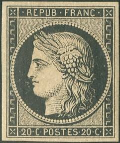 - 1849 : apparaissent les premiers timbres postes en France qui portent la charge de l'affranchissement désormais à l'expéditeur des lettres. Réforme postale abaissant le prix du port des lettres et créant le timbre-poste à l'effigie de Cérès, déesse des moissons. Ainsi, le prix de la lettre d´un poids donné est le même pour tous sur l'ensemble du territoire français ♦ confer la photo 6 ci-contre.