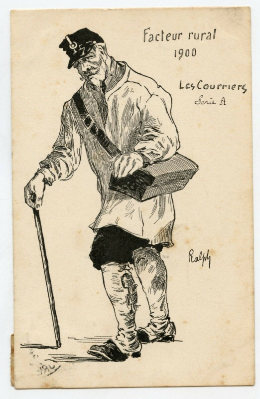 Facteur rural à pied vers 1900 ♦ confer la photo 1 ci-contre.